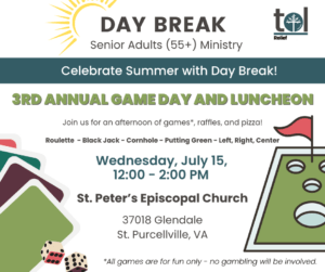 Join our Day Break Ministry for Senior Adults for our third annual GAME DAY at St. Peter’s Episcopal Church.