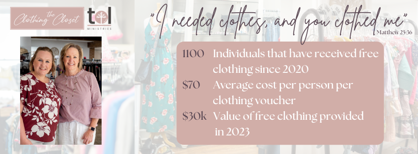 The Clothing Closet first opened its doors in June 2020, and since that date we have seen our impact across Loudoun grow steadily as we reach out to poor and need in our community with the love of Christ.